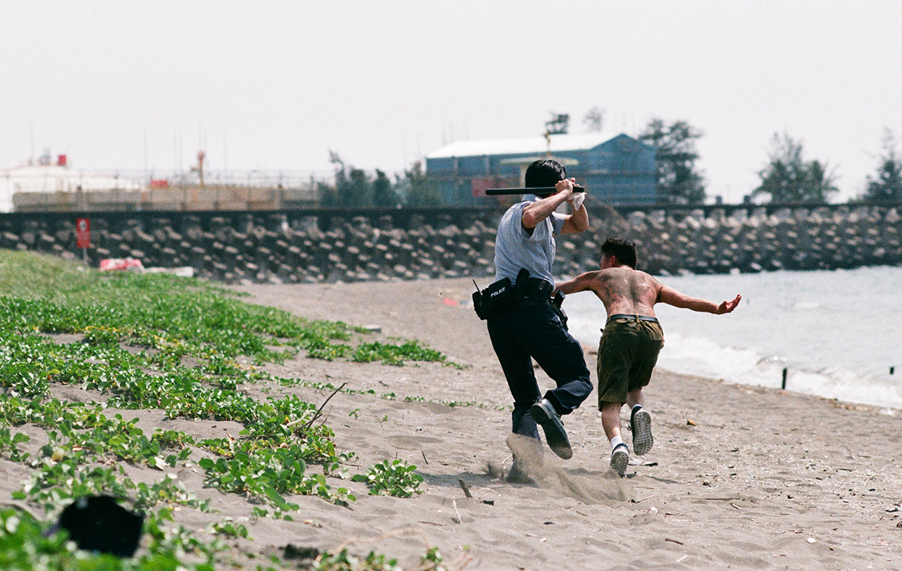 從越南來台灣工作的阿非逃離原來的台灣雇主,希望能多賺一點錢寄給在家鄉的老爸。一日在豔陽高照的海灘,阿非遇到巡邏的台灣警佐阿海,阿海看見阿非的藥物吸食器就不由分說地抽起警棍毒打他。最終在光天大做的海岸邊,清脆而無情的九聲槍響穿越了阿非的身體。而阿非的父親第一次離開越南,就是接回客死異鄉的兒子。